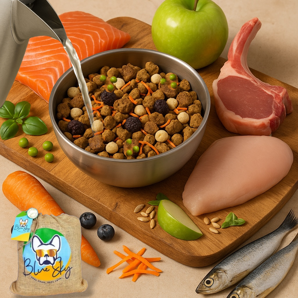 Blue Sky es una marca guatemalteca de alimento natural deshidratado para perros. Se enfoca en ofrecer comida saludable, balanceada y de alta calidad, elaborada con proteínas frescas como cordero, pollo, sardina y trucha, además de vegetales y suplementos naturales. Ofreciendo una experiencia culinaria a tu perro de comida casera instantánea